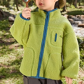 Barn Pojkar Fleece-jacka Friluftsjacka Kappa Ytterkläder Ensfärgat Långärmad Dragkedja Ficka Komfort Håller värmen Mjukt Täcka Utomhus Mode Dagligen Grön Vår Höst 4 år +