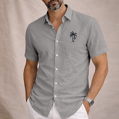 Herr Linneskjorta Minimalistisk Aloha skjorta Sommarskjorta Casual skjorta Knapp upp skjorta Kokosnötsträd Ledigt Strand Svart Vit Rodnande Rosa Himmelsblå Kortärmad Kavajslag Sommar Kläder