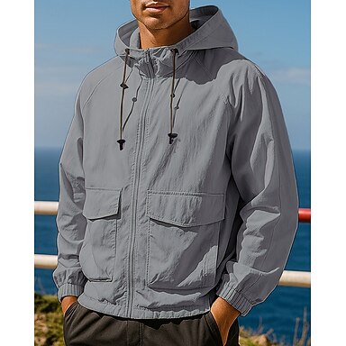 Herr Utomhusjacka Vandringsjacka Sportjacka Utomhus Vattentät Vindtät Snabb tork Lättvikt Vandringskläder Vandringskläder Vår Höst Jacka Tennis Golf Löpning Ensfärgat Svart Armégrön Kaki