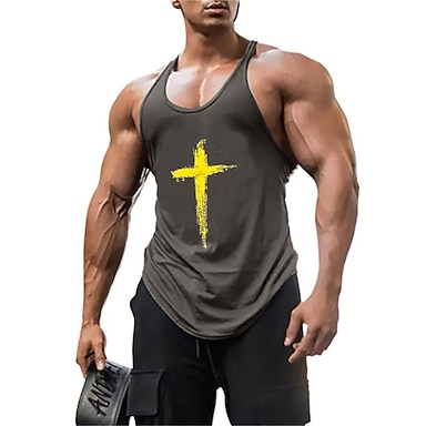 Herrars Bibel Brev Tank Top Vest Top Undertröja Racer Back Tank Top ÄrmLös T-shirt U-Hals T-shirt Stilig Muskel Bekväm Semester Sport Vardag Svart Vit Gul Sommar Kläder