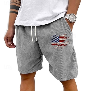 Herr Shorts Sommarshorts Casual shorts Manchester Shorts Ficka Elastisk midja Snörning Landsflagga Komfort Andningsfunktion Kort Utomhus Semester Sport Ledigt Svart Vit