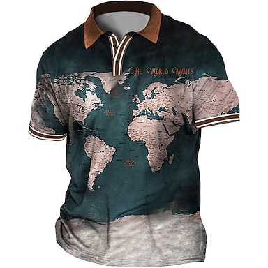 Herr Plusstorlekar POLO Shirt Stor och lång Karta Nedvikt Mönster Kortärmad Vår & sommar Sport Mode Streetwear Designer Utomhus Gata Blast