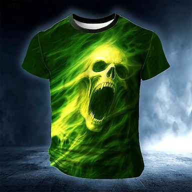 Mäns Grafisk Skalle T-shirt Kortärmad T-shirt 3D-tryck Crew Neck T-shirt Vintage Mode Utomhus Avslappnad Daglig Grön Vår Sommar Kläder S M L XL 2XL 3XL 4XL