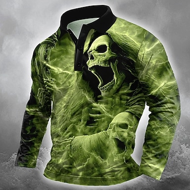 De dödas dag Herr Dödskalle Polo Långärmad Polotröjor Kavajslag Ledigt Utomhus Gata Fritids- Dagliga kläder 3D-utskrift Knappar Vår Höst Vinter Rubinrött Blå Purpur