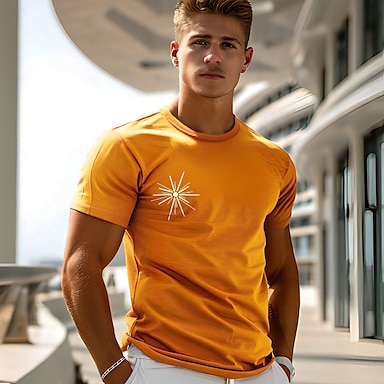 Herr Grafisk T-shirt T-tröja Kortärmad T-shirt Rund hals Skjorta Mode Utomhus Ledigt Gata Ledigt Dagligen Orange Vår & sommar Kläder S M L XL XXL
