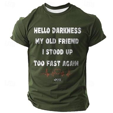 Herrarnas roliga POTS medvetenhet t-shirt - 'Hej mörker min gamla vän jag reste mig för snabbt igen' grafisk kortärmad t-shirt