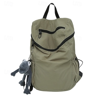Lätt och avslappnad unisex-ryggsäck – enfärgad dagsryggsäck i nylon med plyschnyckelring för skolan, resor och dagligt bruk