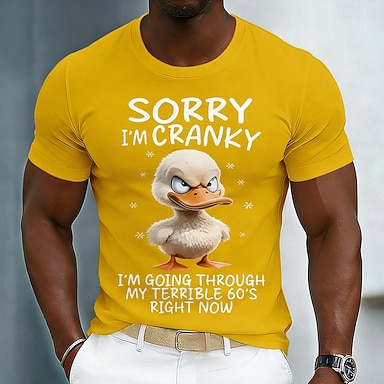 Herr Djur Anka T-shirt Kortärmad T-shirt 3D-tryck Rund hals Skjorta Rolig Ledigt Dagligen Gata Gul Kaki Grå Sommar Vår Kläder S M L XL 2XL 3XL