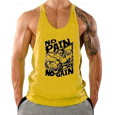 Herr Grafisk Bokstav Träningströja Linne för jogging Gymlinne Sommar Brottarrygg Ärmlös Snabb tork Fuktabsorberande Gymträning Aktiv träning Träning Blå Svart Gul Sportkläder Sportkläder