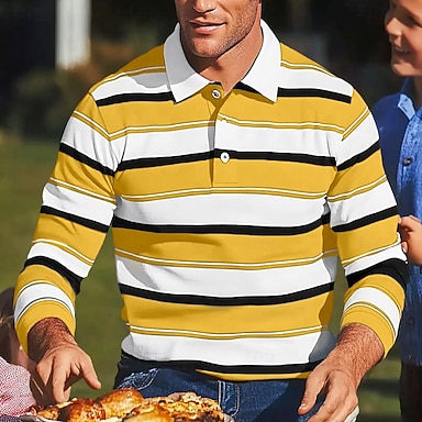 Herr Rand Rugby Polo Kabelstickad Polo Långärmad Polotröjor Skjortor med krage Ledigt Utomhus Fritids- 3D-utskrift Vår Höst Vinter Gul Blå Brun