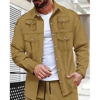 Herr Skjorta Knapp upp skjorta Casual skjorta Arbetsskjortor Cargo skjorta Svart Gul Armégrön Marinblå Blå Kortärmad Slät Nedvikt Gata Ledigt Button-Down Kläder Bomull Mode Klassisk Bekväm