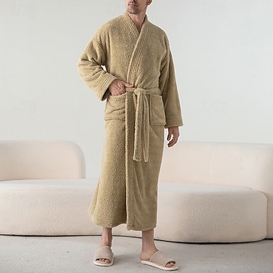 Herr Pyjamas Sovkläder Badrock Slät Mode Stylish Klassisk Hem Dagligen Säng Flanell Polyester Håller värmen Komfort Mjuk V-hals Långärmad Höst Vinter Gul Purpur