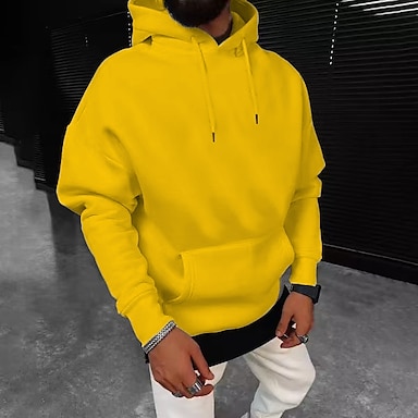 Herr Huvtröja Tröja med tröja Aprikos Svart Vit Gul Vin Huva Ensfärgat Snörning Sport & Utomhus Ledigt Streetwear Het stämpling Streetwear Sportkläder Grundläggande Höst Vinter Kläder Pull Tröjor