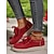 Röda snörskor för kvinnor - mjuka, halkfria, platta loafers, bekväma vardagsskor för jul, shopping och resor