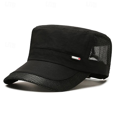 Herr Platt mössa Solhatt Trucker Hat Svart Djupblå Polyester Nät Lappverk Mode Ledigt Gata Dagligen Slät Justerbara Solskyddskräm Andningsfunktion