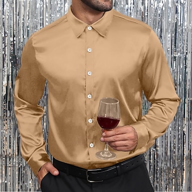Herr Skjorta Silkesliknande Satinskjorta Casual skjorta Slät Dagligen Semester Silver Svart Guld Grön Långärmad Hängande krage Vår Vår & Höst Kläder Rynkad
