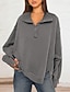 Dam Pullover Tröjor Zip Up sweatshirts Slät Sport Mode Ledigt Långärmad Hög hals Vanliga toppar Gata Vardag Ledigt Halv dragkedja Kvarts dragkedja Dragkedja Grå Höst Vinter