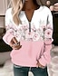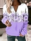 Dam Zip Up sweatshirts Blommig Grafisk Ledigt Långärmad Hög hals Vanliga toppar Rubinrött Blå Purpur Grön Vår Höst Vinter
