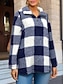 Dam Blus Rutig Elegant Dagligen Stylish Långärmad Hög hals Långa toppar Dagligen Helgdag Utekväll Knappar Vit Rubinrött Blå Grön Kaki Vår Höst
