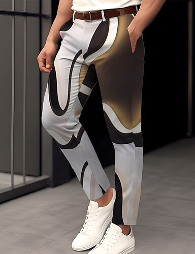 Herr Grafisk Kostymbyxor Medium Midja Formell Ledigt 3D-utskrift Sommar Vår Höst vinter Vit Gul Blå