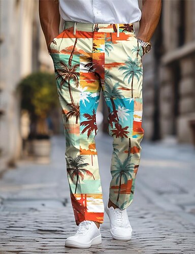 palmträd semester hawaiian herrresort 3d-tryckta klänningsbyxor platt fram raka ben polyester medium midja byxor utomhus semester semester dagligt slitage s till 3xl