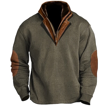 Herr Tröja Manchestertyg Marinblå Brun Armégrön Beige Kaffe Fjärdedels blixtlås Färgblock Lappverk Semester Gata Utekväll Manchestertyg Mode Designer Grundläggande Vår & Höst Kläder Pull Tröjor