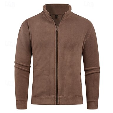 Herr Tröja Fleecetröja Fleece-jacka Rubinrött Kaki Mörkgrå Beige Kaffe Kinakrage Slät Sport & Utomhus Dagligen Helgdag Polyester Streetwear Grundläggande Ledigt Höst Vinter Kläder Pull Tröjor