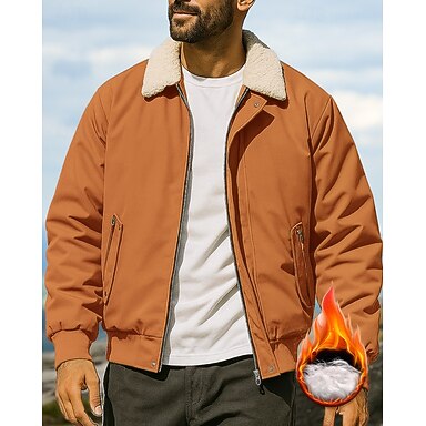 Herr Imitationsläderjacka Fleece-jacka Bikerjacka Motorcykeljacka Semester Dagligen Vindtät Håller värmen Ficka Vinter Slät Mode Klassisk Kavajslag Normal Svart Kaffe Jacka