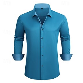 Herr Skjorta Knapp upp skjorta Slät Bröllop Dagligen Svart Vit Vin Kungsblå Långärmad Nedvikt Vår & Höst Kläder Lappverk