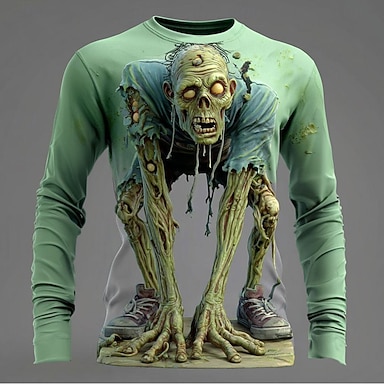 Herr Zombier 3D T-shirt Långärmad T-shirt 3D-tryck Rund hals Skjorta Mode drivna Gata Ledigt Dagligen Rodnande Rosa Blå Purpur Sommar Vår Höst Kläder S M L XL XXL XXXL 4XL