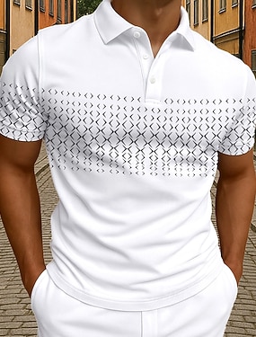 Herr Geometrisk Golf Sport pikétröjor Kortärmad Polotröjor Skjortor med krage Ledigt Fritids- Helgdag Dagliga kläder Knappar Sommar Vår Blå Svart Vit