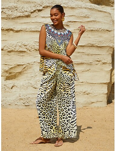 slimmad tankini dragsko i leopardmönstrad baddräkt