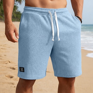 Herr Våffelshorts Shorts Casual shorts Ficka Elastisk midja Strukturerad Slät Komfort Andningsfunktion Knelängd Ledigt Utomhus Strand Semester Mode Vit Ljusgrön Elastisk