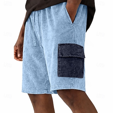 Herr Shorts Sommarshorts Casual shorts 100 % tvättade shorts i bomull Ficka Färgblock Tvättad Komfort Andningsfunktion Över Knät Ledigt Utomhus Strand Semester Mode Rodnande Rosa Grön Elastisk