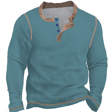 Herr Våffel T-shirt T-shirt Waffle Henley Shirt Långärmad Polokrage Tröja Fjärdedels blixtlås Höst vinter Ensfärgat Färgblock Traditionell / Vintage Ledigt Lappverk Färgblock Ledigt Hem Utomhus Svart