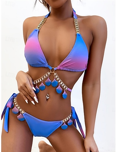 Kvinnors bikini 2-delad baddräkt Cheeky smal rygglös semester strandkläder ombre halterneck ärmlös baddräkt