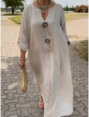 Dam Maxiklänning 100% Bomuld Kaftanklänning Vardagsklänning Grundläggande Modern Dagligen Helgen Lös passning Slät Halvlång ärm V-hals Svart Marinblå Brun Grön Sommar Vår