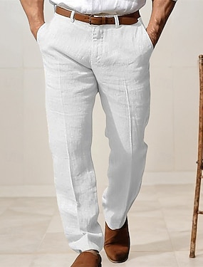 Herr Linne Byxor Långbyxor Sommarbyxor Framficka Veck Rakt ben Slät Komfort Andningsfunktion Fullängd Ledigt Dagligen Strand Semester Mode Svart Vit Oelastisk