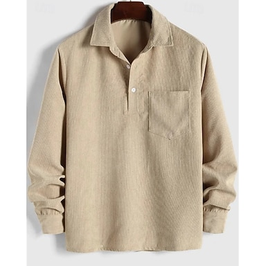 Herr Skjorta Popover skjorta Casual skjorta Strandskjorta Manchesterskjorta Brun Grön Djupblå Aprikos Långärmad Ensfärgat Kavajslag Semester Ledigt Ficka Kläder Mode Ledigt Bekväm