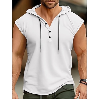 Herr Henleytröja Linne Ärmlös Henley Sommar Slät Mode Designer Bohemisk Knappar Ledigt Semester Utekväll Ljusblå Svart Vit Topp t-shirt för män