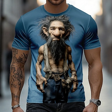 Herr Nyans Gammal man T-shirt Kortärmad T-shirt 3D-tryck Rund hals Skjorta Rolig Ledigt Dagligen Gata Blå Grå Sommar Vår Kläder S M L XL 2XL 3XL
