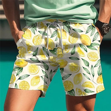Herr Frukt Citron 3D-utskrift Badshorts Boardshorts Medium Midja Hawaiisk Ledigt Strand Helgdag Snörning med meshfoder Elastisk midja Designer Kläder