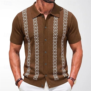 Herr Skjorta Casual skjorta Knapp upp skjorta Jacquardskjorta Svart Marinblå Brun Kortärmad Slät Tröjkrage Ledigt Dagligen Framficka Kläder Elegant Vintage Mode Ledigt
