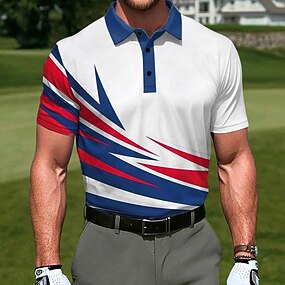 Herr Geometrisk Linje Polo Kortärmad Polotröjor Skjortor med krage Business Casual Utomhus Fritids- Dagliga kläder Ficka 3D-utskrift Sommar Blå Vit Rubinrött