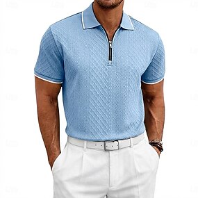 Herr Zip Polo Strukturerad Ledigt Helgdag Kavajslag Fjärdedels blixtlås Kortärmad Mode Grundläggande Slät Jacquard Fjärdedels blixtlås Vår & sommar Sommar Vår Normal Ljusblå Svart Vit Vinröd Marinbl