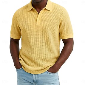 Herr Våffelpikétröjor Strukturerad Ledigt Helgdag Kavajslag Ribbstickad polokrage Kortärmad Mode Grundläggande Slät Knappar Mjukt Sommar Vår Normal Vit Gul Vinröd Mintgrön Grön Khaki grön