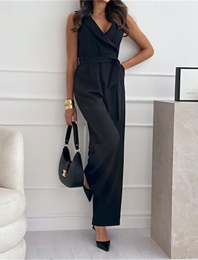 Dam Vanligt Jumpsuits Elegant Ensfärgat Ärmlös Brett skaft V-hals Plisserad Semester Helgdag Normal Svart Armégrön Rubinrött Sommar