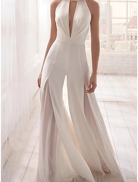Dam Vanligt Jumpsuits Elegant Ensfärgat Ärmlös Brett skaft Halterneck Lappverk Ficka Dagligen Semester Normal Svart Vit Armégrön Sommar