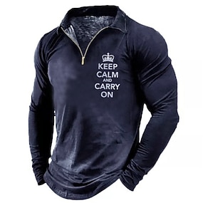 Herrars Långärmad Grafik Tee "Håll Dig Lugnt Och Fortsätt" Kvarts-Zip