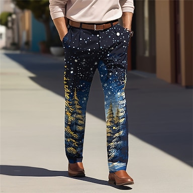 Julgran Affär Ledigt Herr 3D-utskrift Kostymbyxor Byxor Utomhus Dagliga kläder Streetwear Jul Polyester Svart Marinblå Brun S M L Medium Midja Elasticitet Byxor